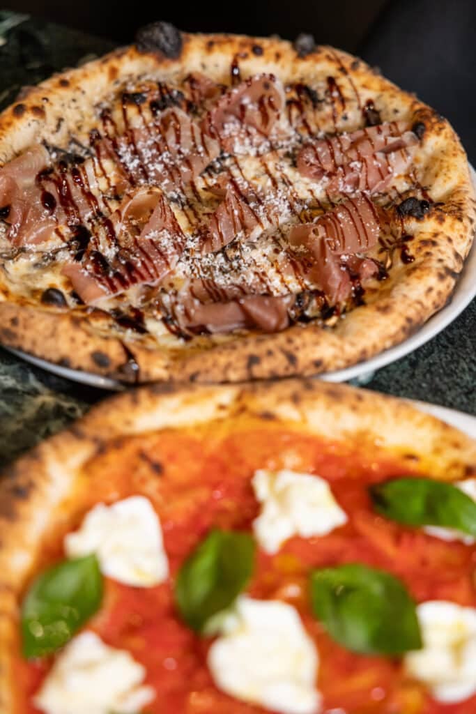 Toppings are kept intentionally minimal, San Marzano tomatoes, fresh mozzarella, olive oil, and seasonal ingredients, allowing balance and timing to define the final result rather than excess. It’s an approach rooted in tradition, where consistency and process matter as much as taste.