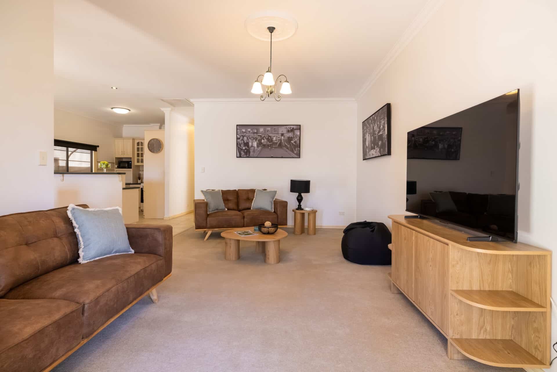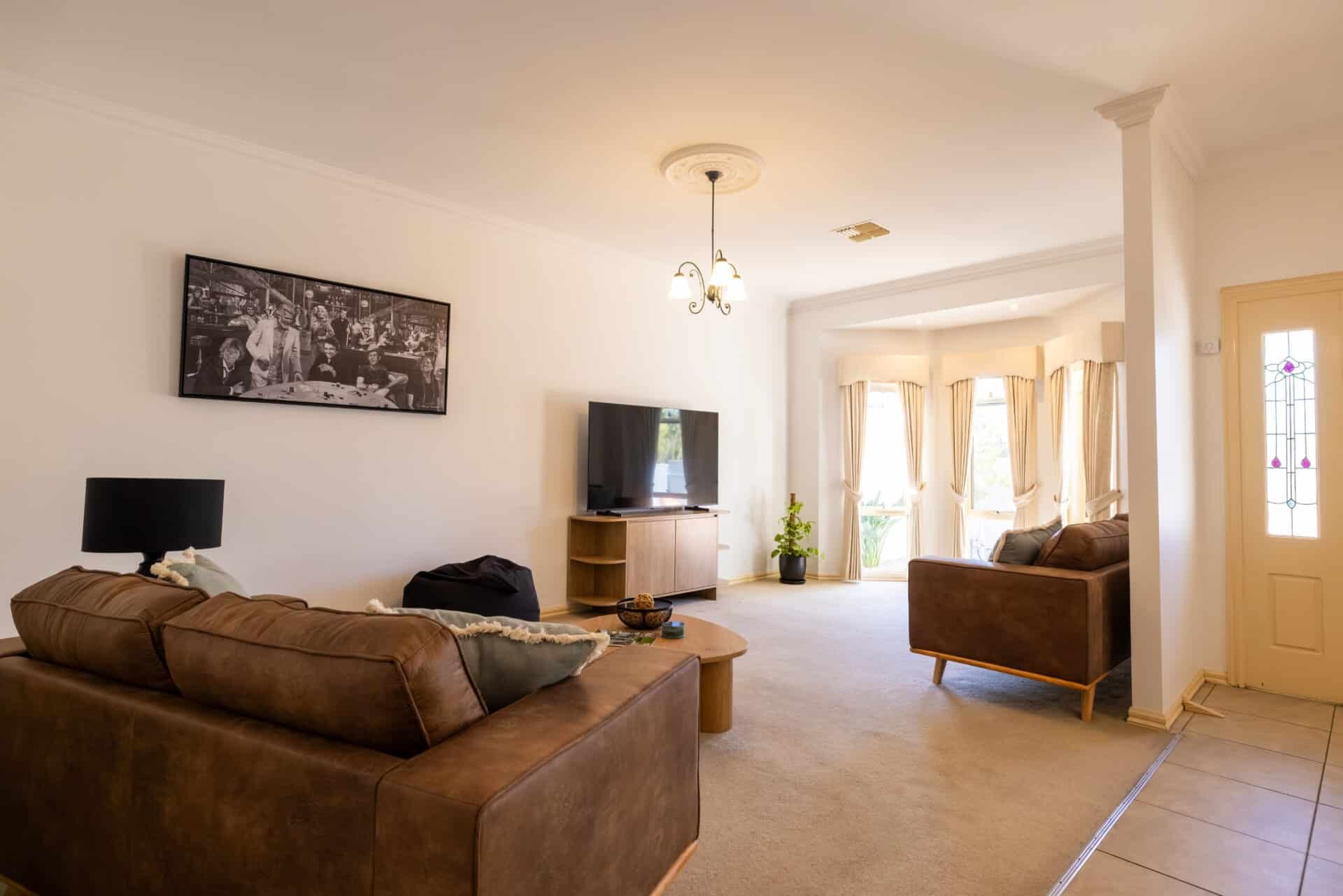 Perfectly suited to business and leisure travelers alike, this spacious Mildura holiday home, offers a fully featured kitchen, laundry and second separate living room complete with sofa bed and option of a deluxe blow-up bed. Two Queen sized bedrooms, with robes and master offering its own ensuite. Complete with private front and rear yard. Perfectly located in Mildura’s CBD, and only a short stroll to the supermarket, shops, cafes and restaurants.